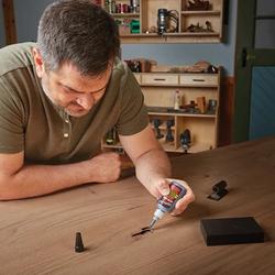 • Su fórmula reforzada con caucho es extremadamente resistente a los impactos e ideal para disimular imperfecciones, reparar grietas y rellenar nudos/huecos en madera